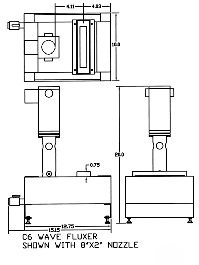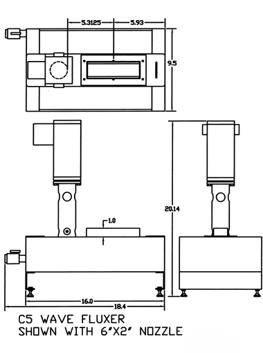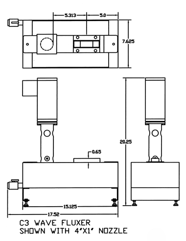 Our fluxers feature a stainless steel pot, variable wave control, and flux drain valve.Flux nozzles are easily changed, and tooling may be added (as shown in the photo) to support the part to be fluxed. Flux flow may be constantly on or for a timed duration. Wenesco can provide fittings and level switches to support flux level, and density control apparatus.