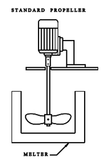 Stirrers are available with your choice of conventional propellers or "side wiping" propellers that clean the melter's wall during the heat cycle.. The entire stirrer is easily removed from the melter for cleaning or service.